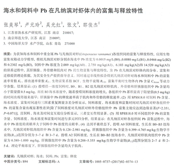 海水和飼料中Pb在凡納濱對蝦體內(nèi)的富集與釋放特性