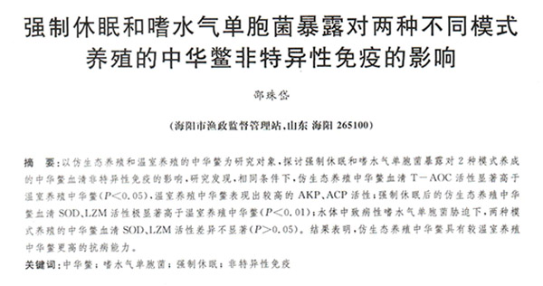 強制休眠和嗜水氣單胞菌暴露對兩種不同模式養(yǎng)殖的中華鱉非特異性免疫的影響
