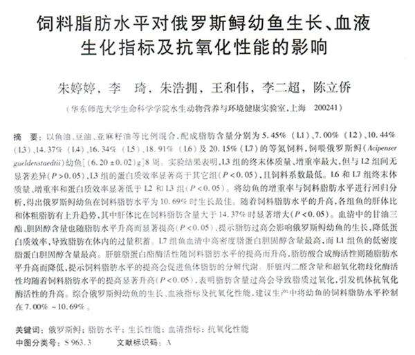 飼料脂肪水平對俄羅斯鱘幼魚生長、血液生化指標及抗氧化性能的影響