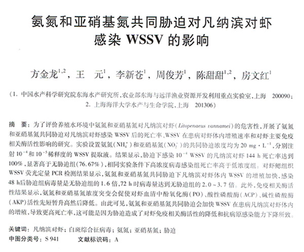 氨氮和亞硝基氮共同脅迫對(duì)凡納濱對(duì)蝦感染W(wǎng)SSV的影響