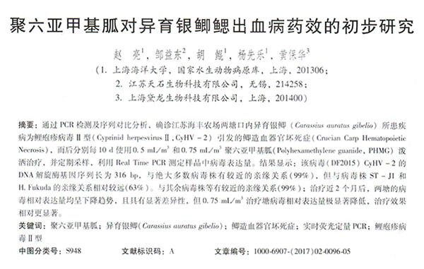 聚六亞甲基胍對異育銀鯽鰓出血病藥效的初步研究