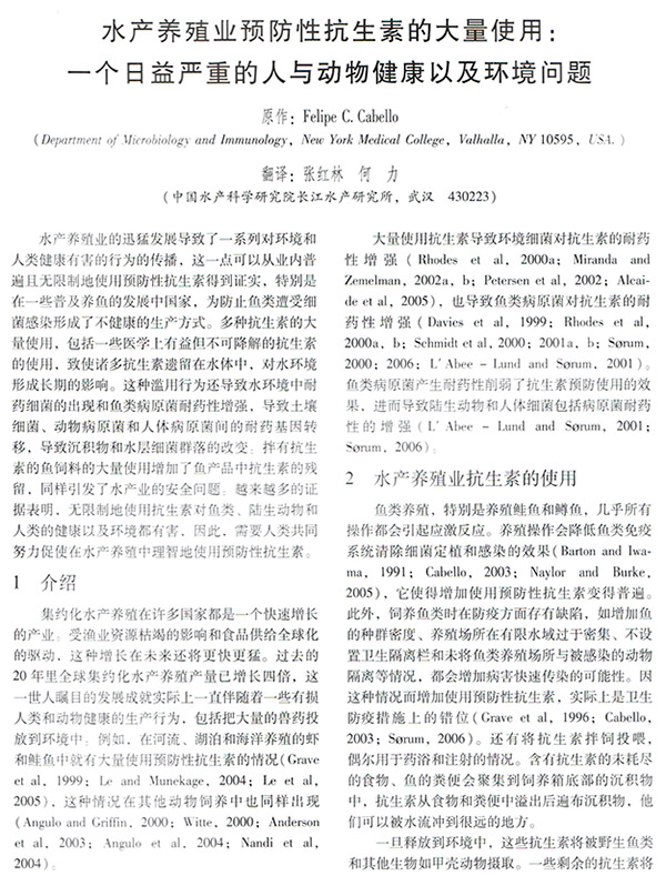 水產(chǎn)養(yǎng)殖業(yè)預(yù)防性抗生素的大量使用:一個(gè)日益嚴(yán)重的人與動(dòng)物健康以及環(huán)境問題