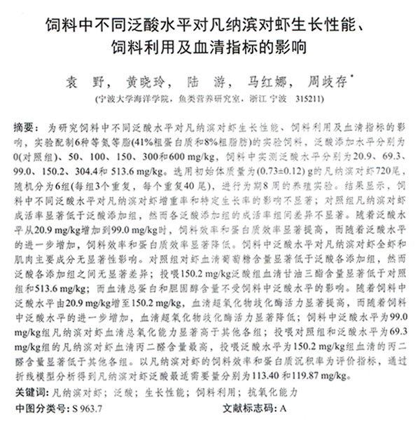飼料中不同泛酸水平對凡納濱對蝦生長性能、飼料利用及血清指標的影響