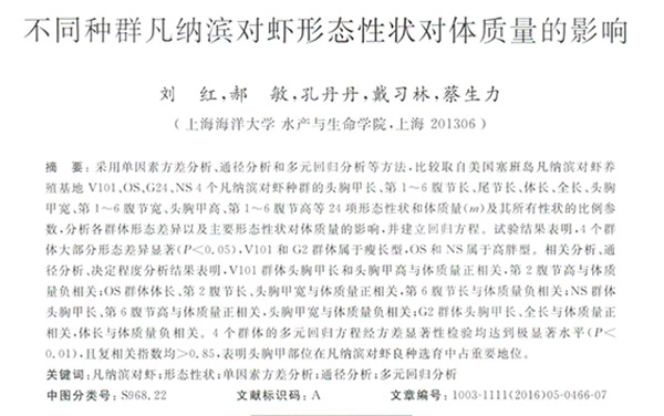 不同種群凡納濱對(duì)蝦形態(tài)性狀對(duì)體質(zhì)量的影響