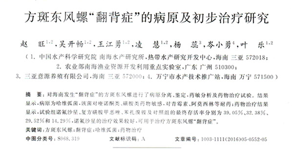 方斑東風(fēng)螺“翻背癥”的病原及初步治療研究