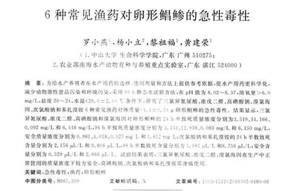 6種常見漁藥對卵形鯧鲹的急性毒性
