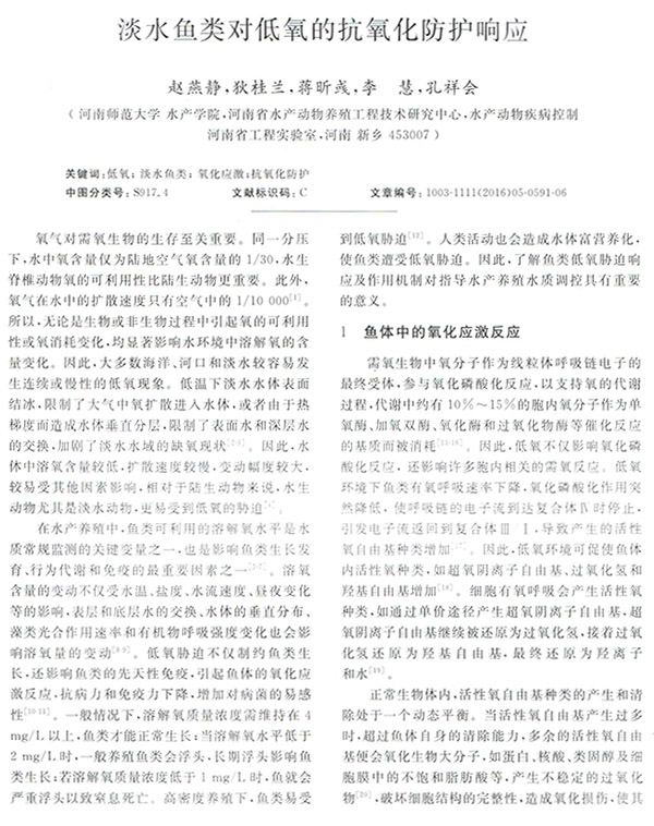 淡水魚類對低氧的抗化氧化防護響應(yīng)