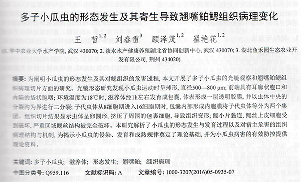 多子小瓜蟲的形態(tài)發(fā)生及其寄生導致翹嘴鲌鰓組織病理變化