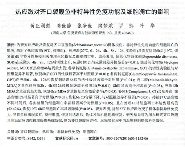 熱應(yīng)激對齊口裂腹魚非特異性免疫功能及細(xì)胞凋亡的影響