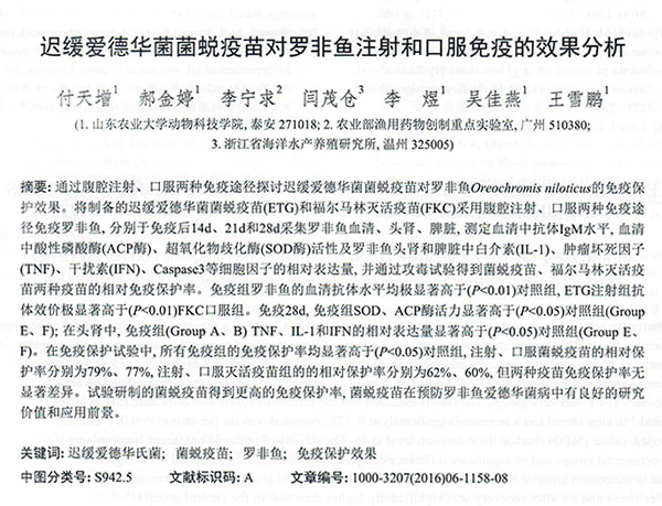 遲緩愛德華菌菌蛻疫苗對(duì)羅非魚注射和口服免疫的效果分析