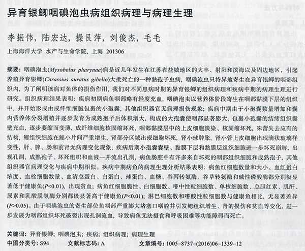異育銀鯽咽碘泡蟲病組織病理與病理生理