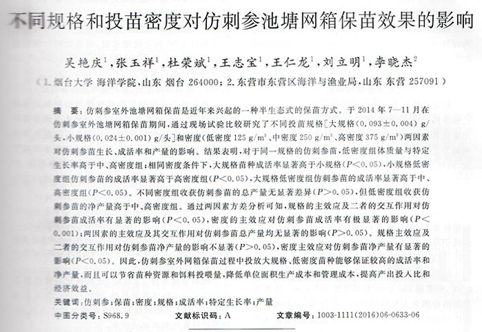 不同規(guī)格和投苗密度對仿剌參池塘網(wǎng)箱保苗效果的影響