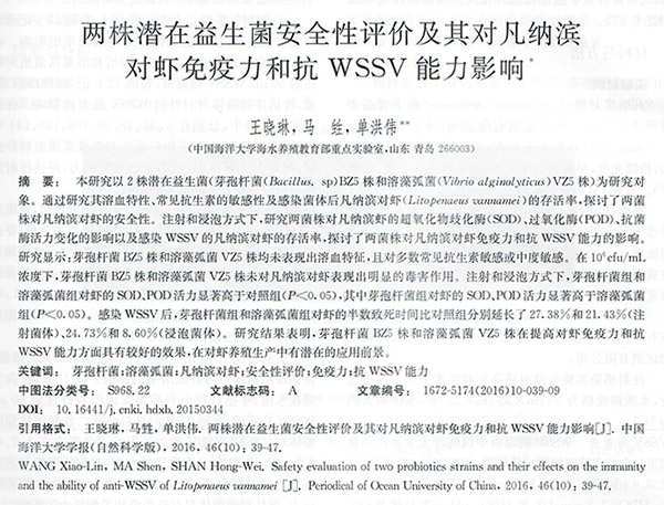 兩株潛在益生菌安全性評價及其對凡納濱對蝦免疫力和抗WSSV能力影響