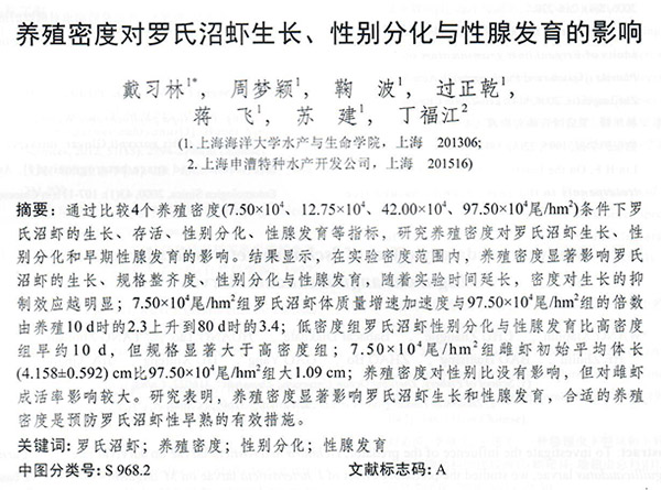 養(yǎng)殖密度對羅氏沼蝦生長、性別分化與性腺發(fā)育的影響