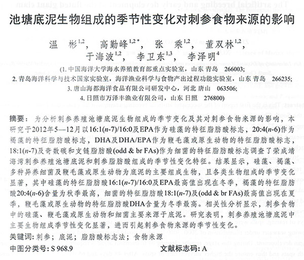 池塘底泥生物組成的季節(jié)性變化對刺參食物來源的影響