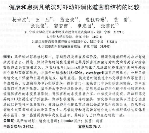 健康和患病凡納濱對蝦幼蝦消化道菌群結(jié)構(gòu)的比較