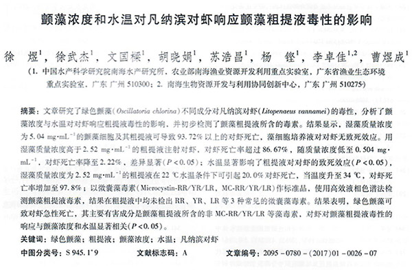 顫藻濃度和水溫對凡納濱對蝦響應顫藻粗提液毒性的影響