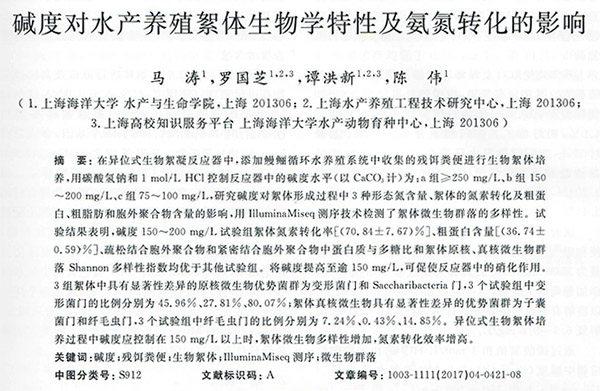 堿度對水產(chǎn)養(yǎng)殖絮體生物學(xué)特性及氨氮轉(zhuǎn)化的影響