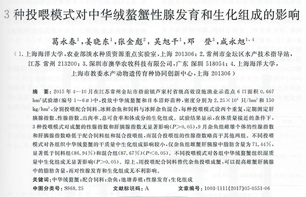 3種投喂模式對(duì)中華絨螯蟹性腺發(fā)育和生化組成的影響