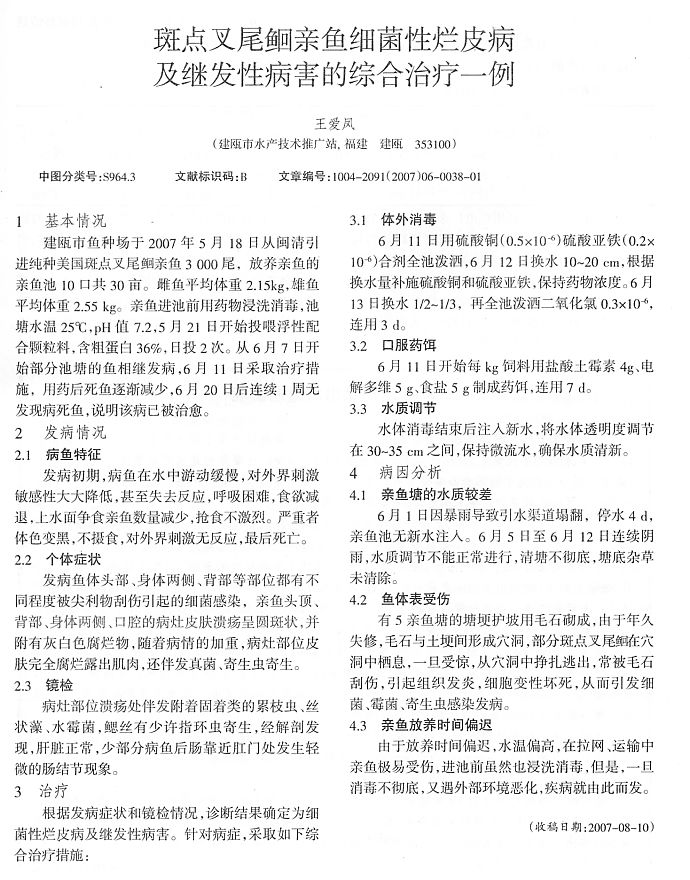 斑點(diǎn)叉尾鮰親魚(yú)細(xì)菌性爛皮病及繼發(fā)性病害的綜合治療一例