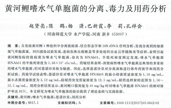 黃河鯉嗜水氣單胞菌的分離、毒力及用藥分析