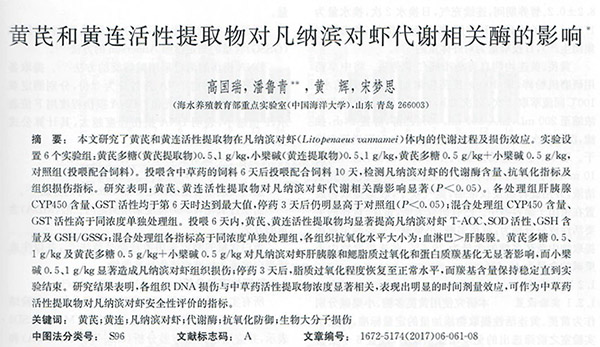 黃芪和黃連活性提取物對凡納濱對蝦代謝相關(guān)酶的影響