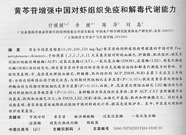 黃芩苷增強(qiáng)中國對(duì)蝦組織免疫和解毒代謝能力