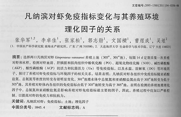 凡納濱對蝦免疫指標(biāo)變化與其養(yǎng)殖環(huán)境理化因子的關(guān)系