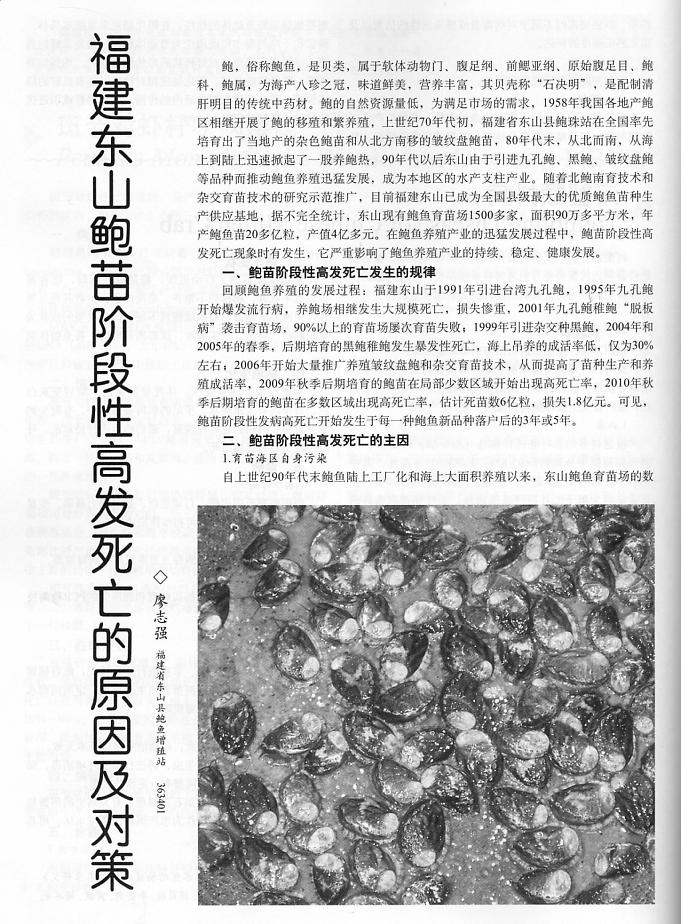 福建東山鮑苗階段性高發(fā)死亡的原因及對(duì)策1