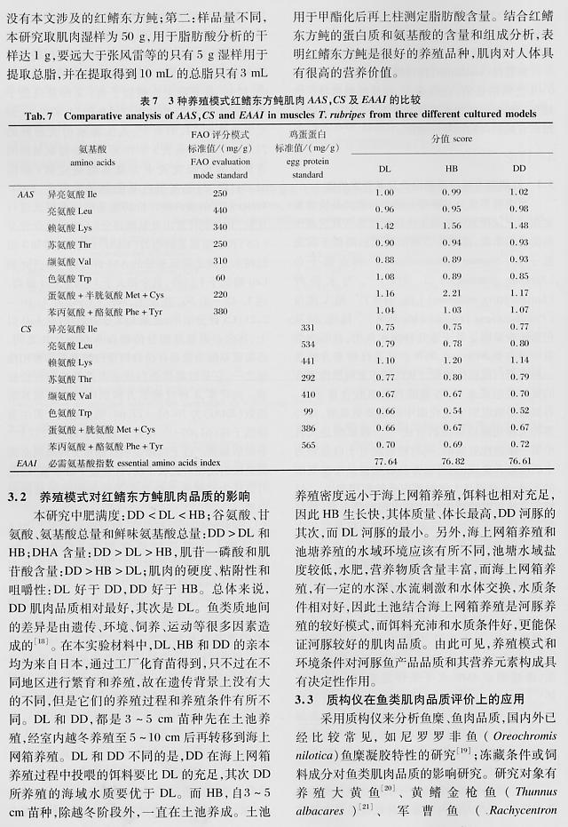 不同養(yǎng)殖模式下紅鰭東方鲀的品質(zhì)比較7