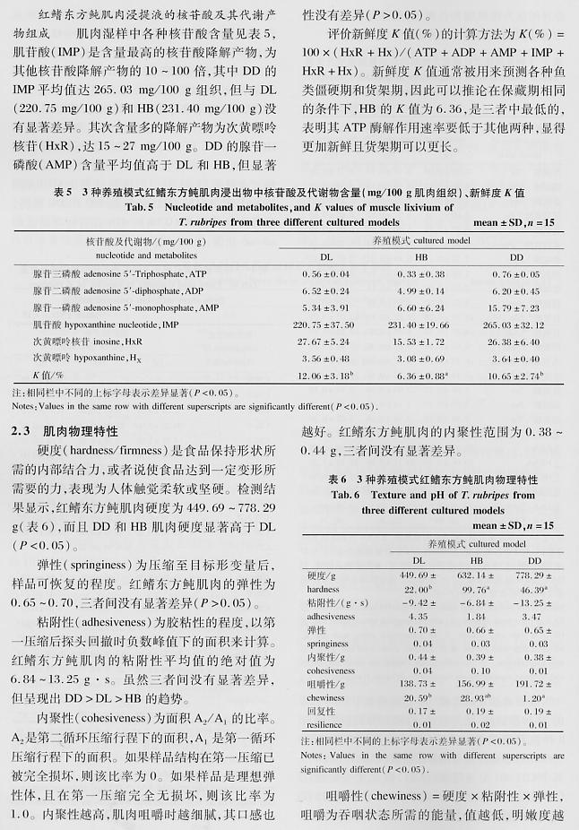 不同養(yǎng)殖模式下紅鰭東方鲀的品質(zhì)比較5