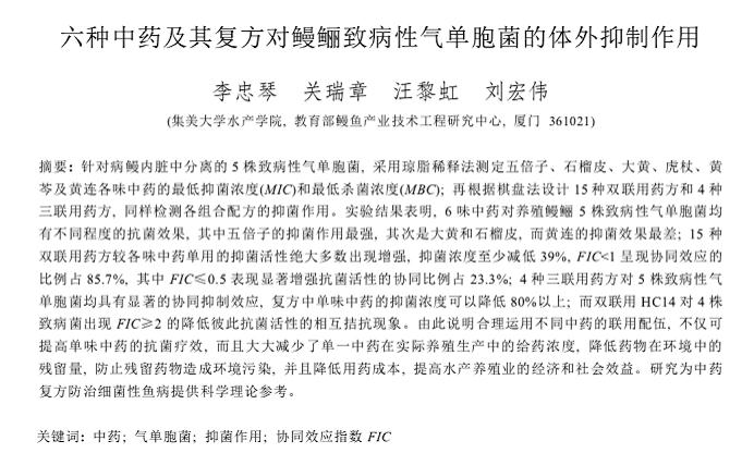 六種中藥及其復(fù)方對鰻鱺致病性氣單胞菌的體外抑制作用