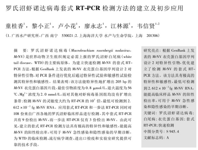 羅氏沼蝦諾達(dá)病毒套式RT_PCR檢測(cè)方法的建立及初步應(yīng)用