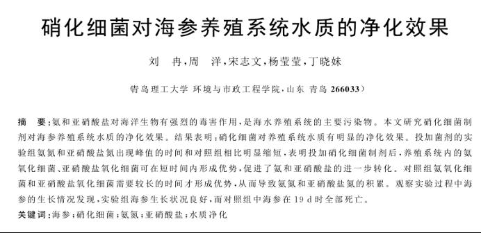 硝化細菌對海參養(yǎng)殖系統水質的凈化效果