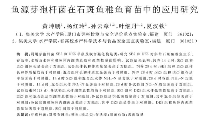 魚源芽孢桿菌在石斑魚稚魚育苗中的應用研究