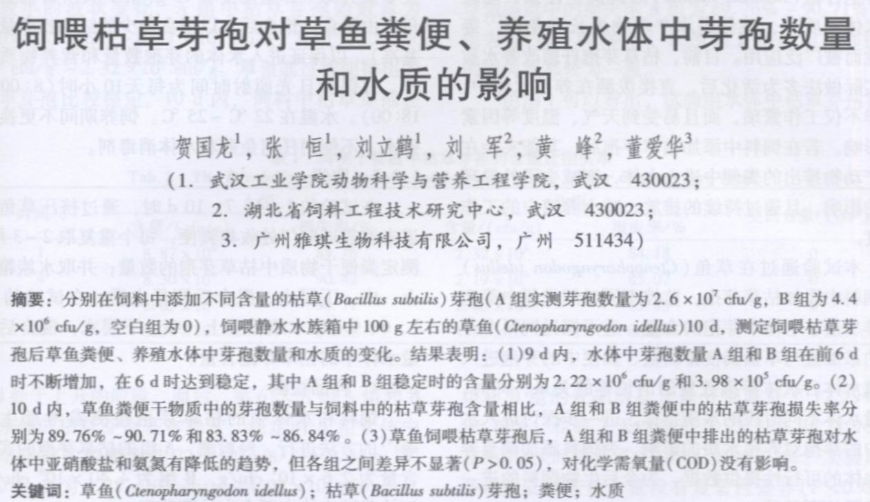 飼喂枯草芽孢對(duì)草魚糞便、養(yǎng)殖水體中芽孢數(shù)量和水質(zhì)的影響