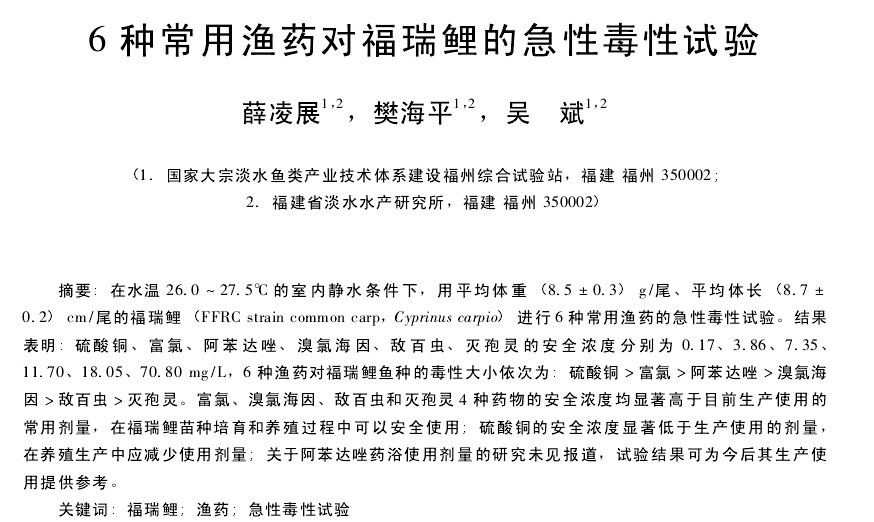 6種常用漁藥對(duì)福瑞鯉的急性毒性試驗(yàn)