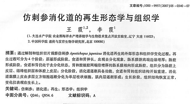 仿刺參消化道的再生形態(tài)學(xué)與組織學(xué)