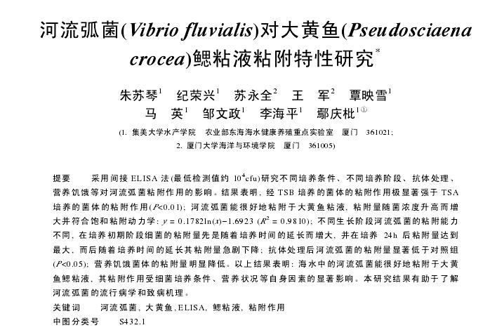 河流弧菌對(duì)大黃魚(yú)鰓粘液粘附特性研究