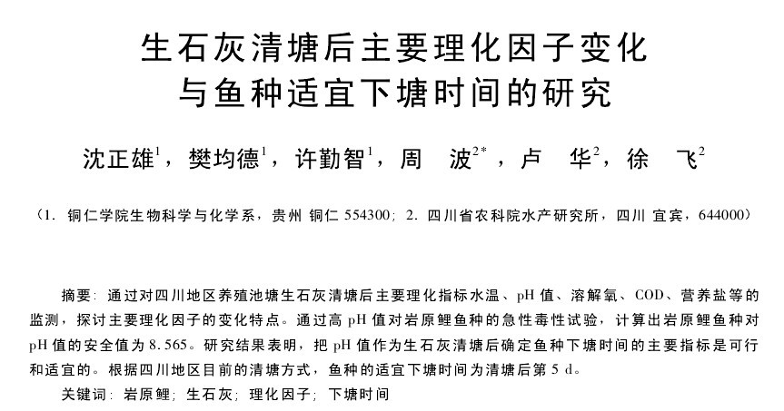 生石灰清塘后主要理化因子變化與魚種適宜下塘時間的研究