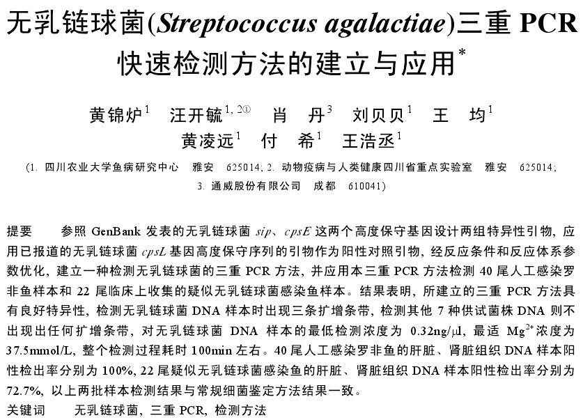 無乳鏈球菌(Streptococcusagagalactiae)三重PCR快速檢測(cè)方法