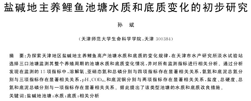鹽堿地主養(yǎng)鯉魚池塘水質(zhì)和底質(zhì)變化的初步研究