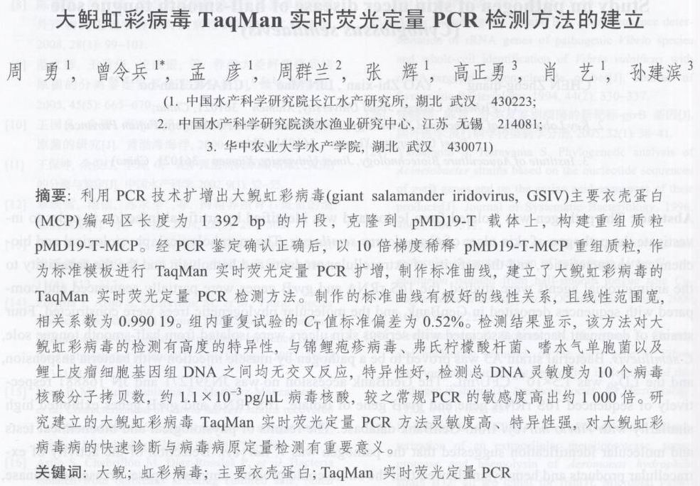 大鯢虹彩病毒TaqMan實時熒光定量PCR檢測方法的建立