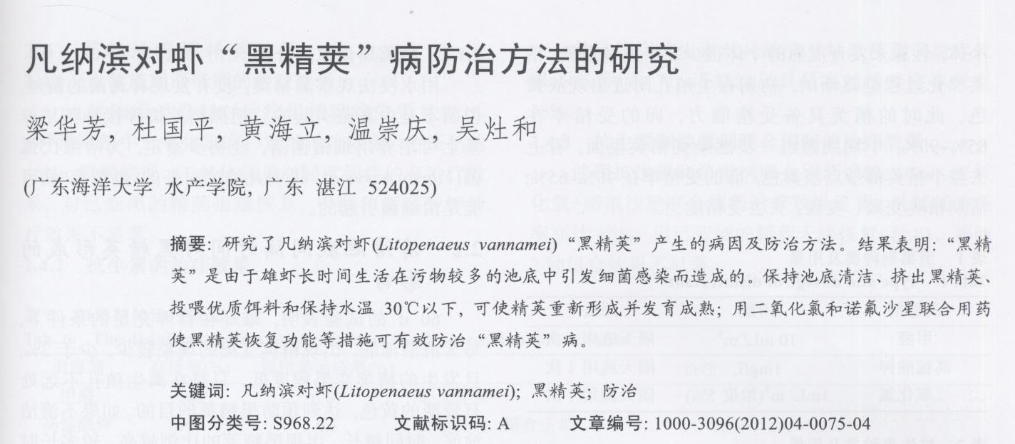 凡納濱對(duì)蝦黑精莢病防治方法的研究