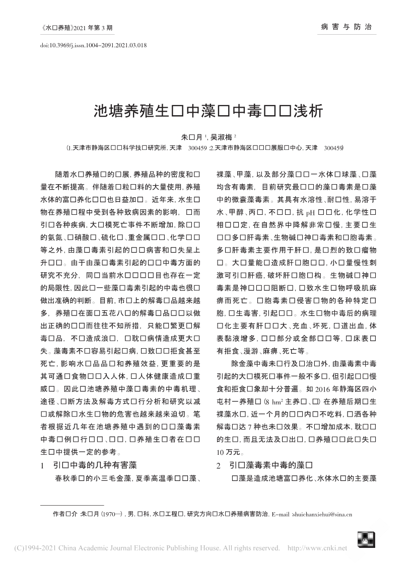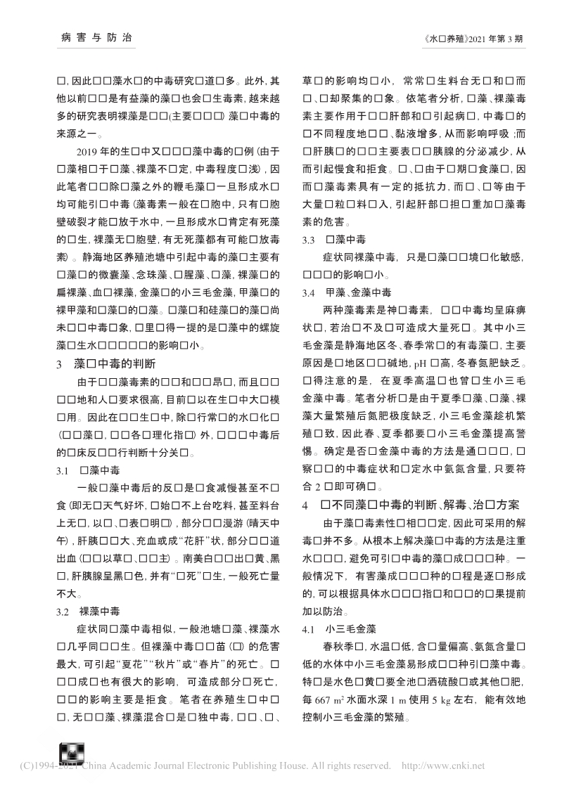 池塘養(yǎng)殖生產(chǎn)中藻類中毒問題淺析