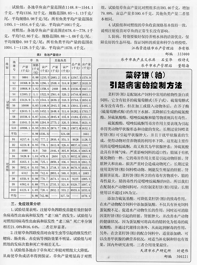 池養(yǎng)草魚注射疫苗免疫效果分析2