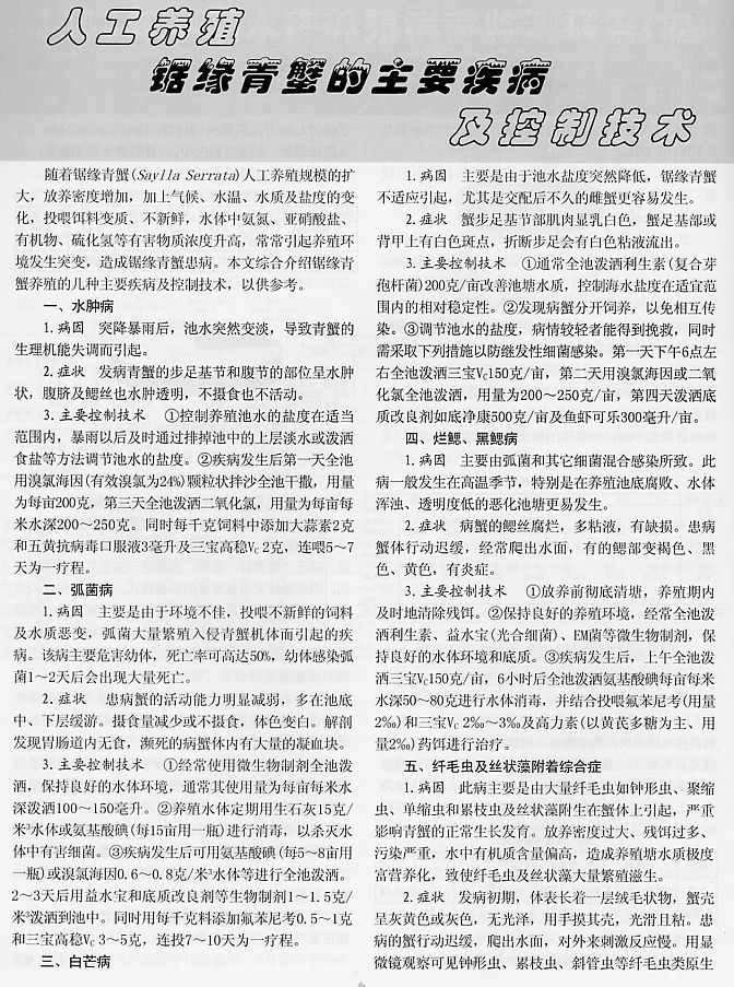 人工養(yǎng)殖鋸緣青蟹的主要疾病及控制技術(shù)1