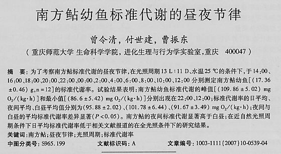 南方鲇幼魚標準代謝的晝夜節(jié)律