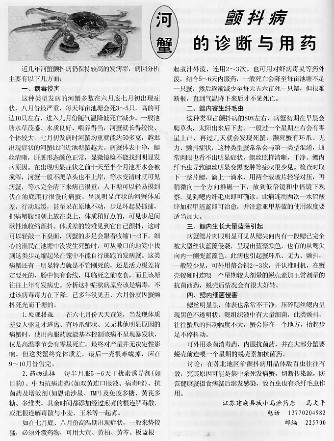 河蟹顫抖病的診斷與用藥