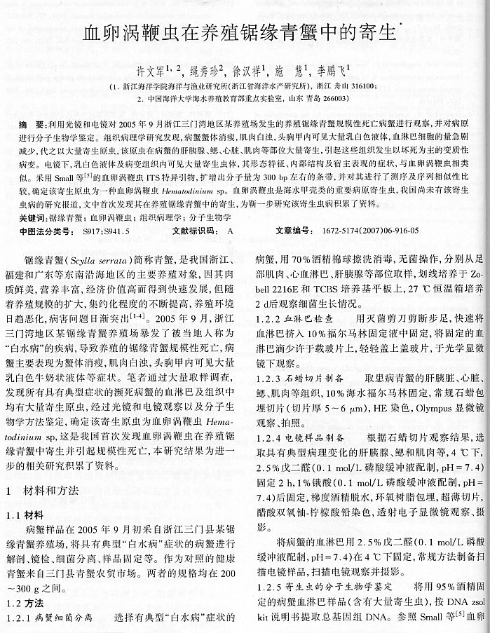 血卵渦鞭蟲在養(yǎng)殖鋸緣青蟹中的寄生1
